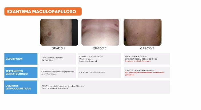 Durante la sesión se abordaron las alteraciones cutáneas más frecuentes relacionadas con la terapia oncológica, así como estrategias de prevención, identificación temprana y manejo eficaz.