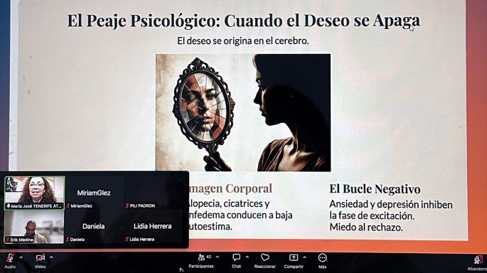 La sesión, impartida por María José González Luis, matrona y sexóloga en la Gerencia de Atención Primaria de Tenerife, puso el foco en el impacto que el cáncer y sus tratamientos pueden generar en la sexualidad y el bienestar emocional de los pacientes. La ponente ofreció herramientas prácticas y estrategias de intervención para que los profesionales de enfermería puedan integrar esta dimensión en la valoración y el acompañamiento, desde un enfoque humanizado, ético y basado en la evidencia.